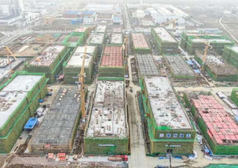 走進(jìn)建設(shè)現(xiàn)場(chǎng),只見(jiàn)塔吊林立、機(jī)聲轟鳴,一棟棟廠(chǎng)房已拔地而起。